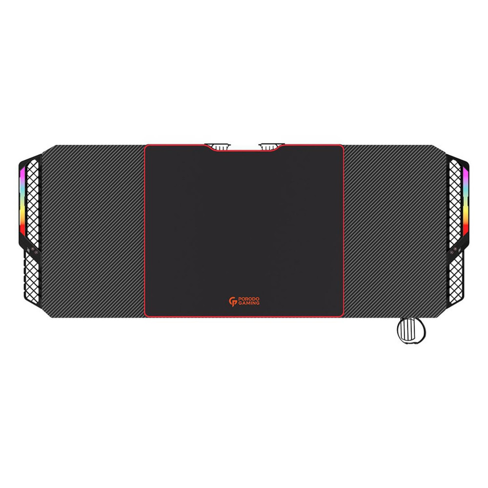 مكتب الألعاب Porodo PDX513-BK مكتب الألعاب E-Sports RGB مكتب ألعاب مقاوم للماء ، حامل أكواب ، لوحة فأرة مطاطية (70 * 60 * 0.2 سم) - أسود